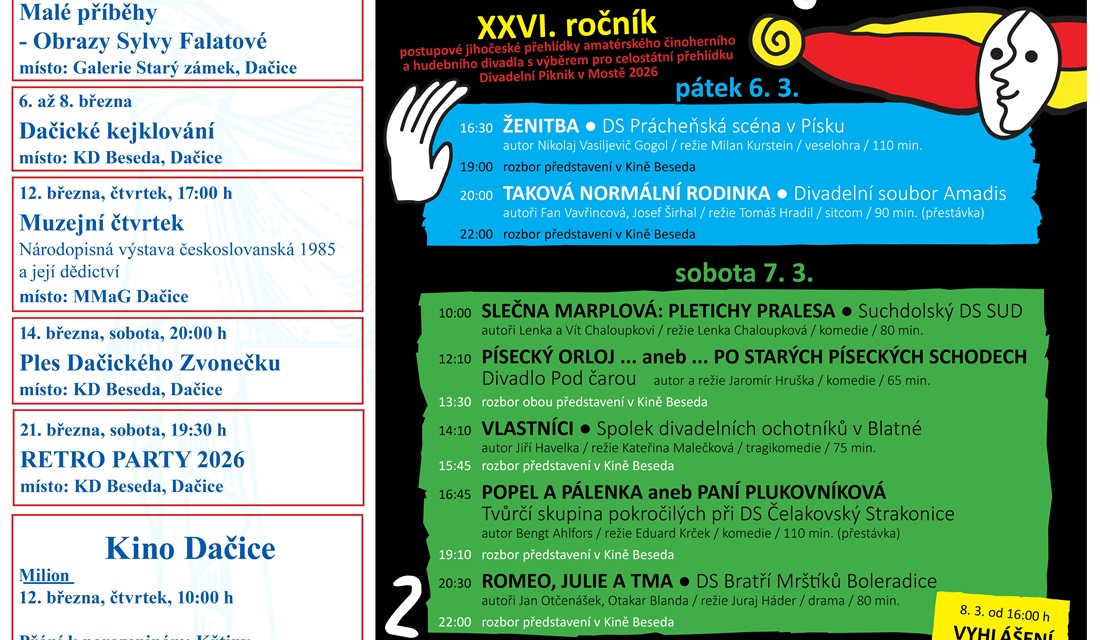 Přehled kulturních akcí na měsíc březen v Dačicích