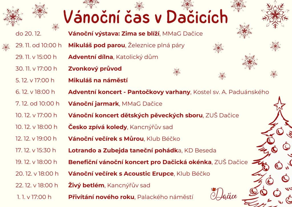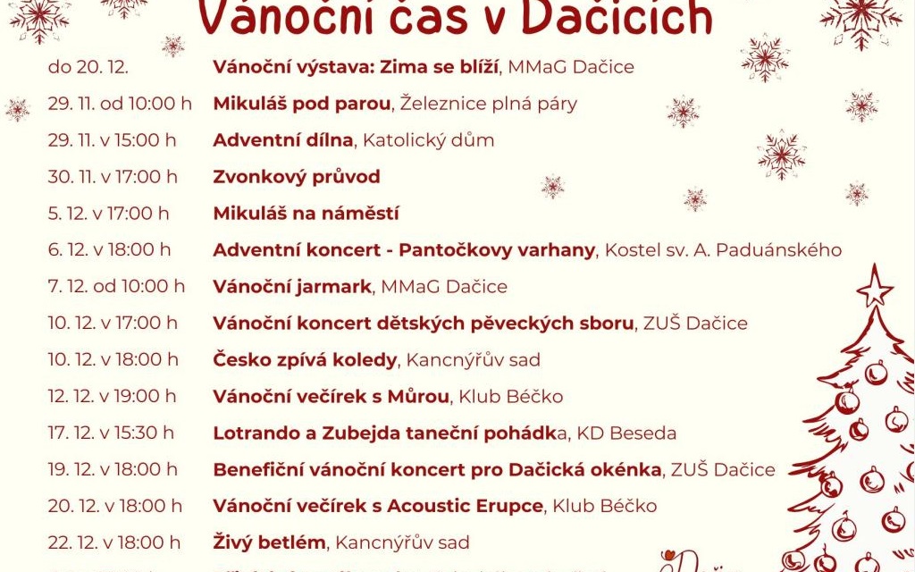 Přehled vánočních akcí v Dačicích.